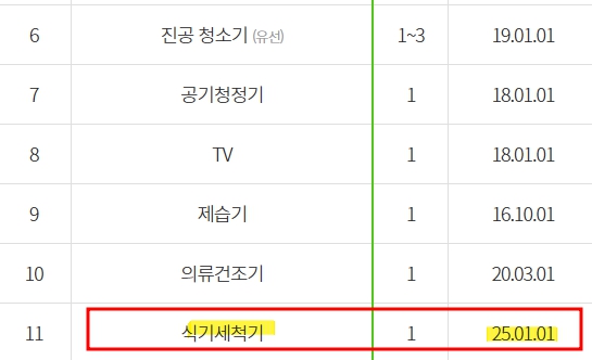 올해 25년부터는 식기세척기가 포함되었네요!!