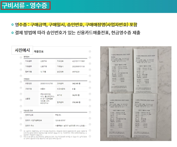 4. 영수증 (거래일시, 거래금액, 승인번호, 상호 기재)