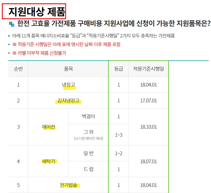 A: 한전 홈페이지에서 지원 품목 리스트를 확인할 수 있습니다.