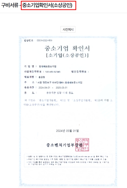 1. 중소기업(소상공인) 확인서