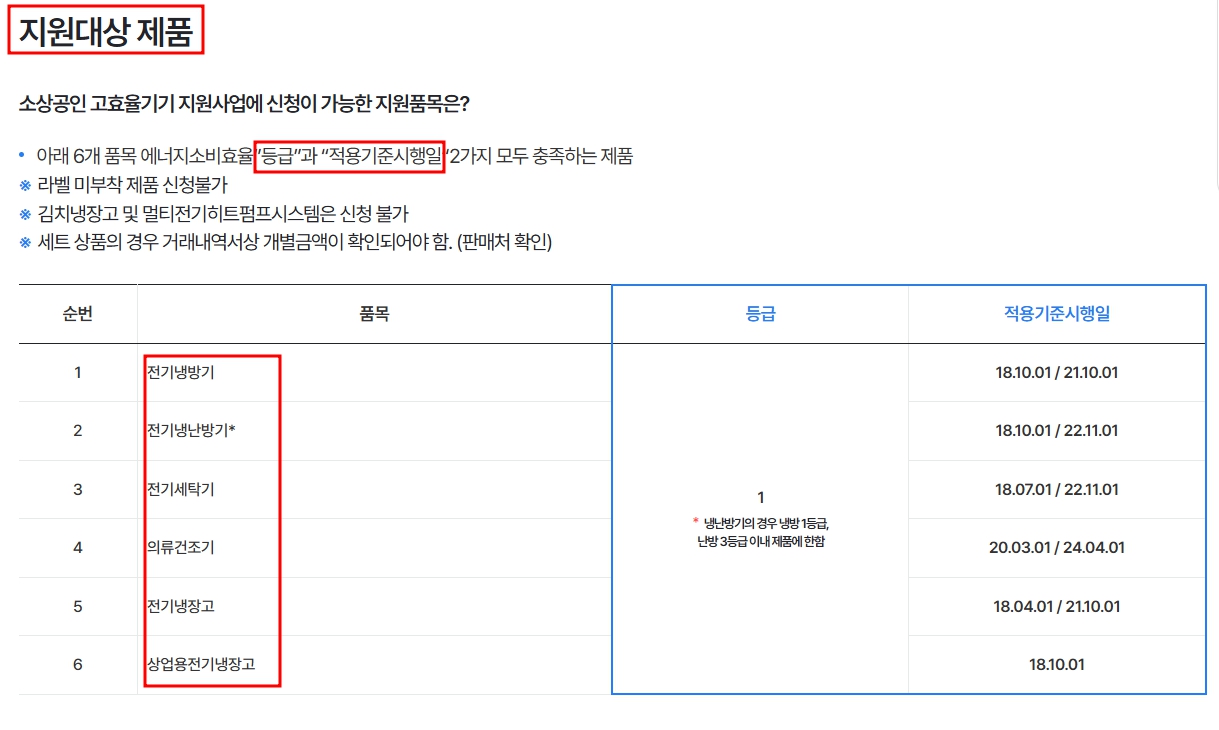 한국에너지공단의 효율등급제도 목록 기준으로 지원 대상 품목에 해당하는 LG전자 제품은