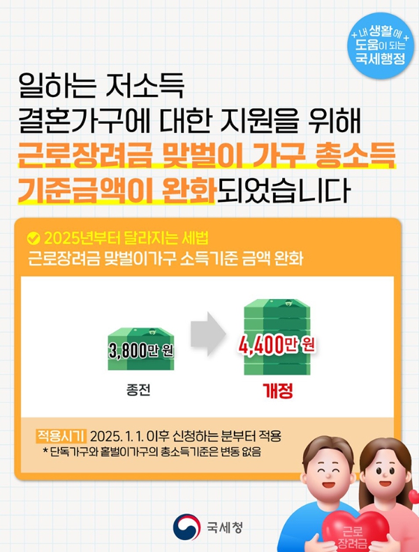 맞벌이 가구: 연소득 4,400만 원 이하