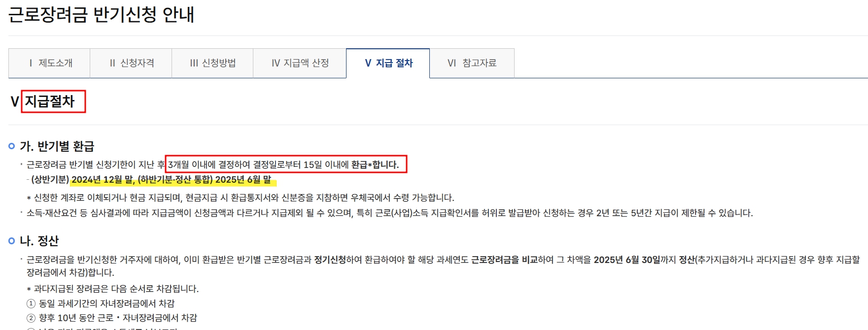 또한, 반기신청을 통해 12월에 지급받은 장려금은 추후 정산을 통해 정확한 금액으로 조정됩니다.