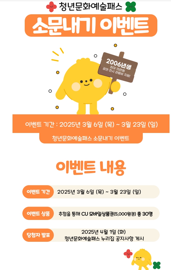 청년 문화예술패스 소문내기 이벤트도 진행되고 있습니다.