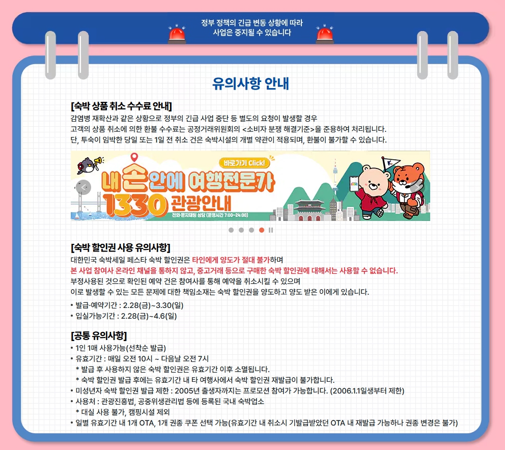 문의: 숙박 세일페스타 콜센터 ☎ 1670-3980