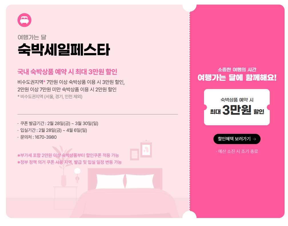 3월, 숙박 세일 페스타 3만원 할인받고 국내여행 떠나자!
