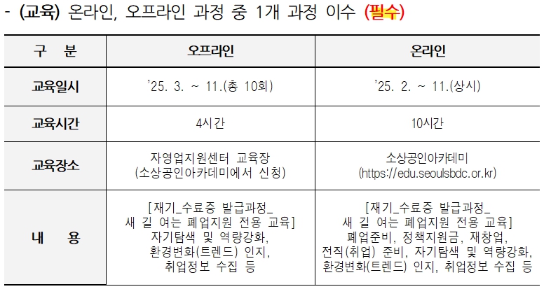 오프라인 교육 (4시간 과정, 자영업지원센터 교육장)