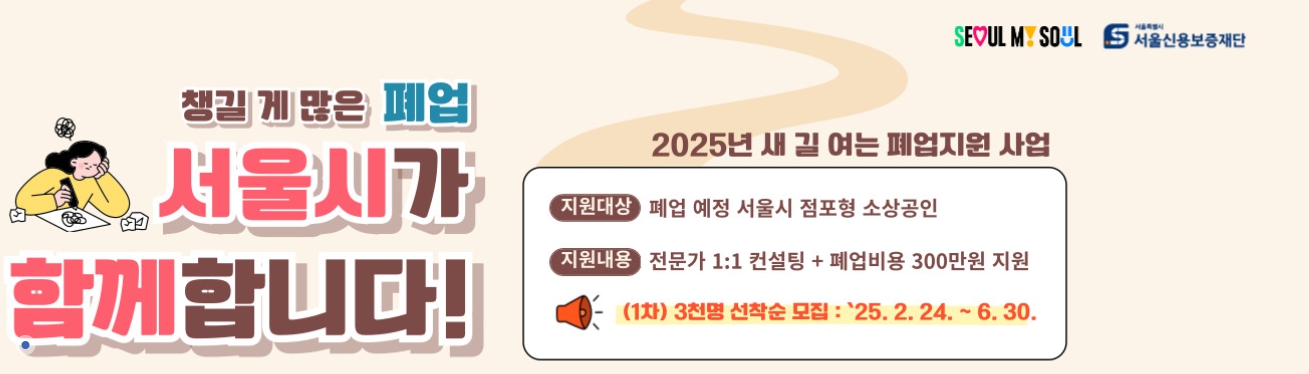만약 폐업을 고민하고 있다면, 혼자 힘들게 모든 과정을 진행하지 말고 서울시의 지원 제도를 활용해 보세요.