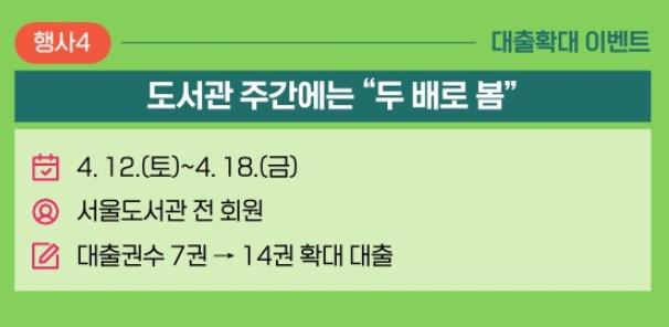 🎁 [대출확대 이벤트] 도서관 주간에는 “두 배로 봄"
