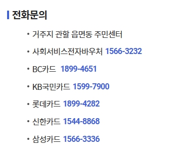 보호자 명의의 국민행복카드를 사용하려면 읍·면·동 행정복지센터 방문 후 사용자 변경 신청 필요