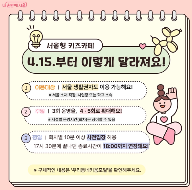 그런데, 최근에 이 서울형 키즈카페가 훨씬 더 좋아지고 편리하게 바뀌었다는 소식, 들으셨나요? 😊