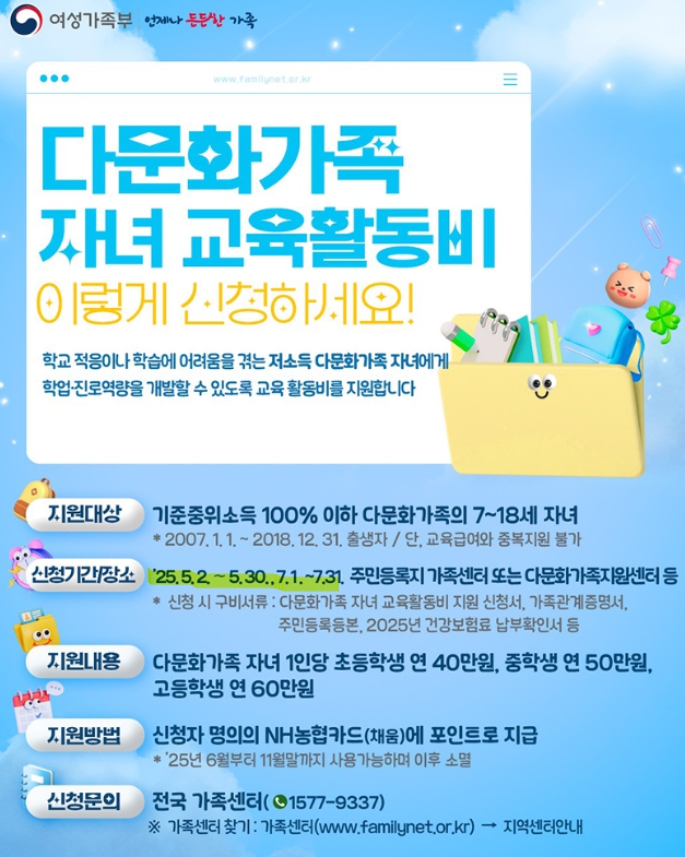 ✅ 언제 다문화가족 자녀 교육활동비 신청해?