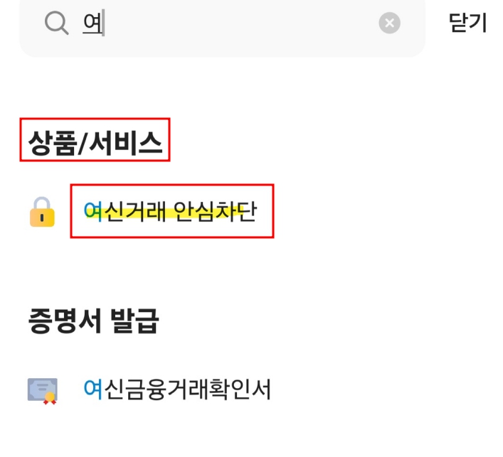 카카오뱅크 앱에서는 ‘여신거래 안심차단’ 검색하면 바로 나와요.