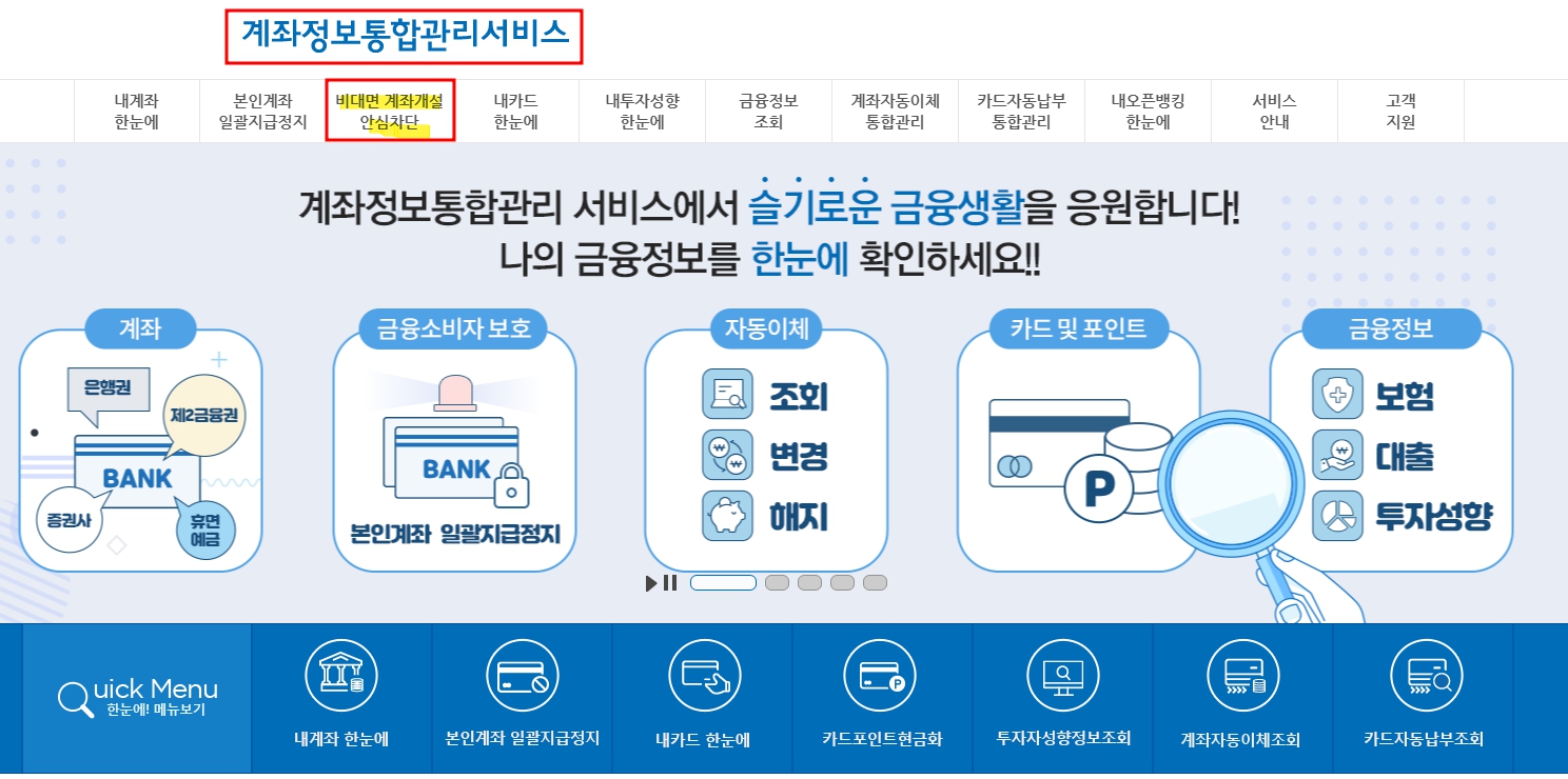 바로 오늘 말씀드릴 계좌개설 안심차단 서비스입니다.