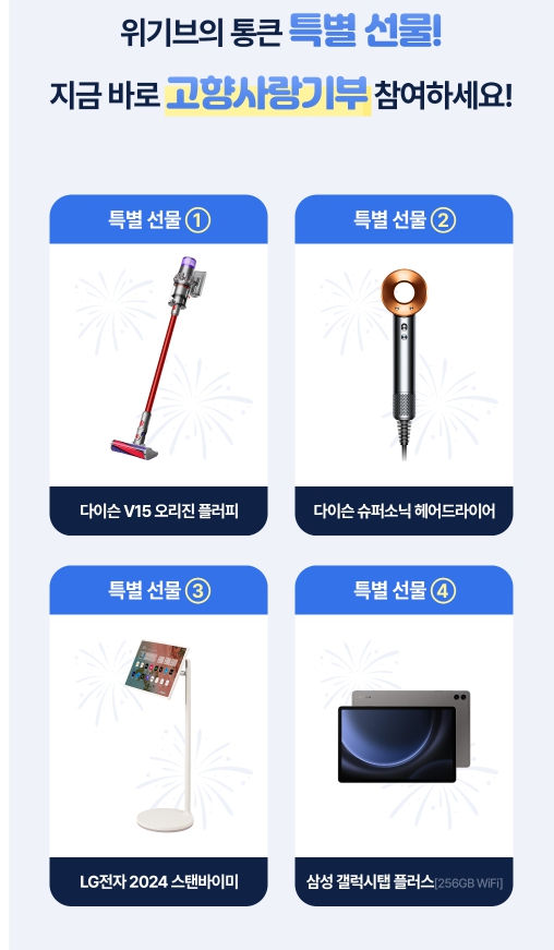 각종 다이슨 청소기를 비롯 특별 선물에 응모할 기회가 주어지니 올해 고향사랑 기부제 답례품은