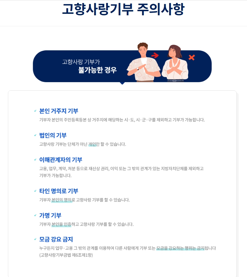 고향사랑 기부제 주의사항