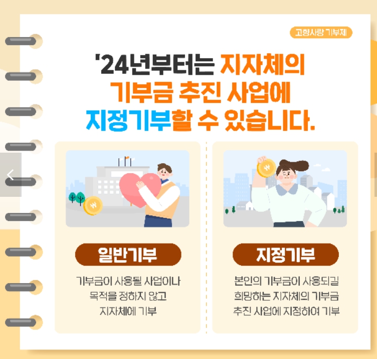 1) 일반 기부: 기부금이 사용될 사업이나 목적을 정하지 않고 지자체에 기부