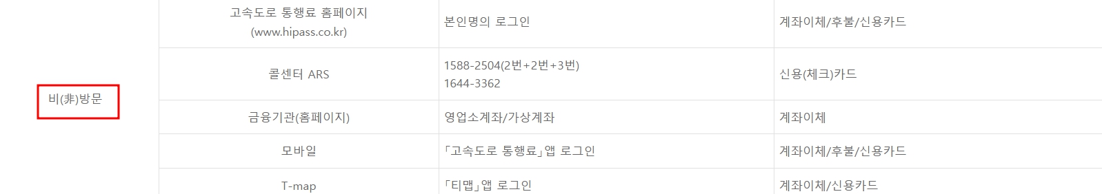 인터넷이나 앱 사용이 어려운 경우, 한국도로공사 콜센터(1588-2504)로 문의하거나