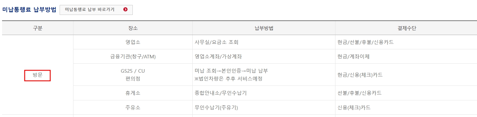 고속도로 미납통행료 납부 방법