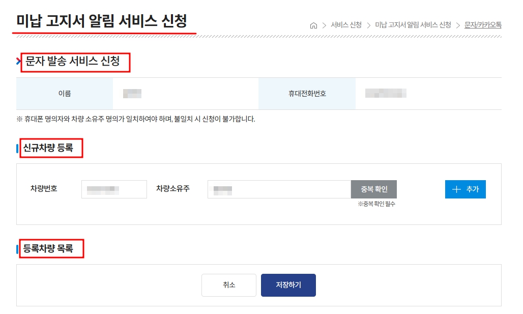 > 서비스 신청 > 미납 고지서 알림 서비스 신청