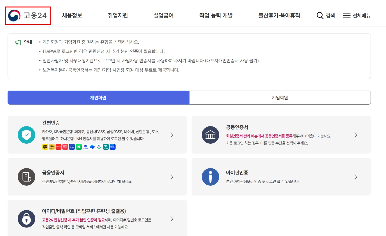 > 로그인: 공인인증서 또는 휴대폰 인증으로 본인 인증을 합니다.