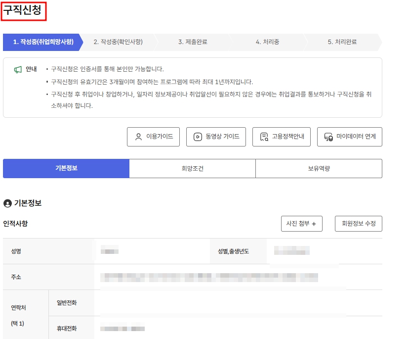 구직활동은 취업사이트에 이력서를 등록하거나 구직 교육을 이수하는 등의 활동을 포함합니다.