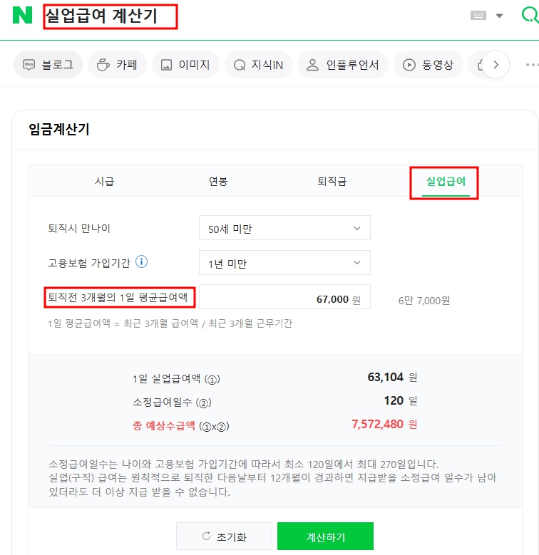 고용보험 실업급여 모의계산을 빠르게 계산할 수 있습니다.