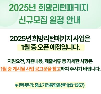 2025년 희망리턴패키지 사업은 1월 중 사업 공고문이 게시될 예정입니다