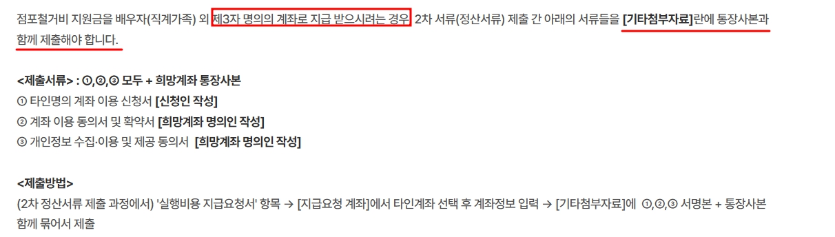 소상공인 철거지원금 제삼자 명의의 계좌로 지급받으시려는 경우