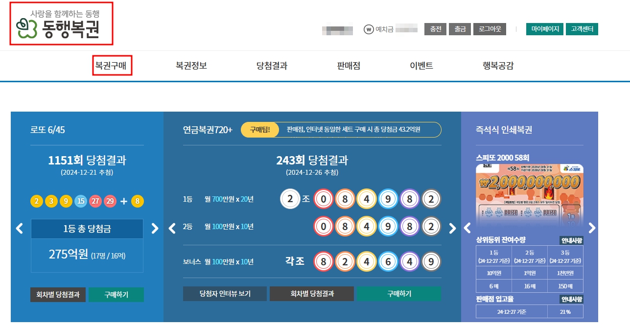충전이 완료되면 바로 연금복권을 구매할 수 있습니다.
