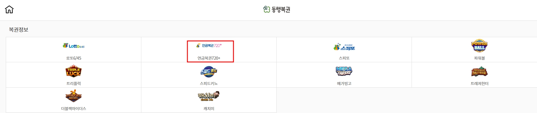 > "복권 구매" 메뉴에서 "연금복권720+" 선택