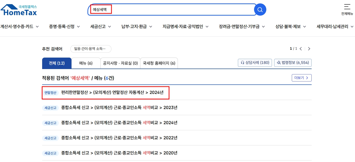 3) 예상 세액 확인: 입력한 정보를 바탕으로 예상 세액과 환급 여부를 확인합니다.