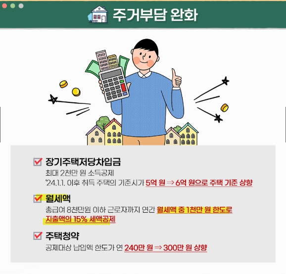 3. 주택 요건: 무주택 세대주 혹은 세대원(이 경우 세대주가 주택 관련 공제를 받지 않아야 함)