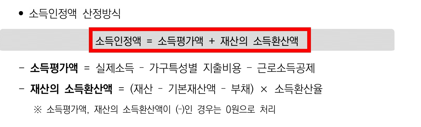 소득인정액 = 소득평가액 + 재산의 소득환산액
