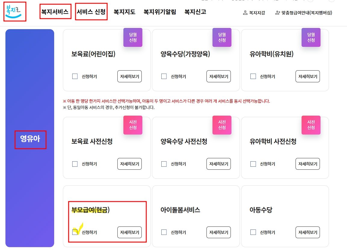 복지로 부모급여 신청은 아동의 보호자가 부모인 경우에만 가능합니다.