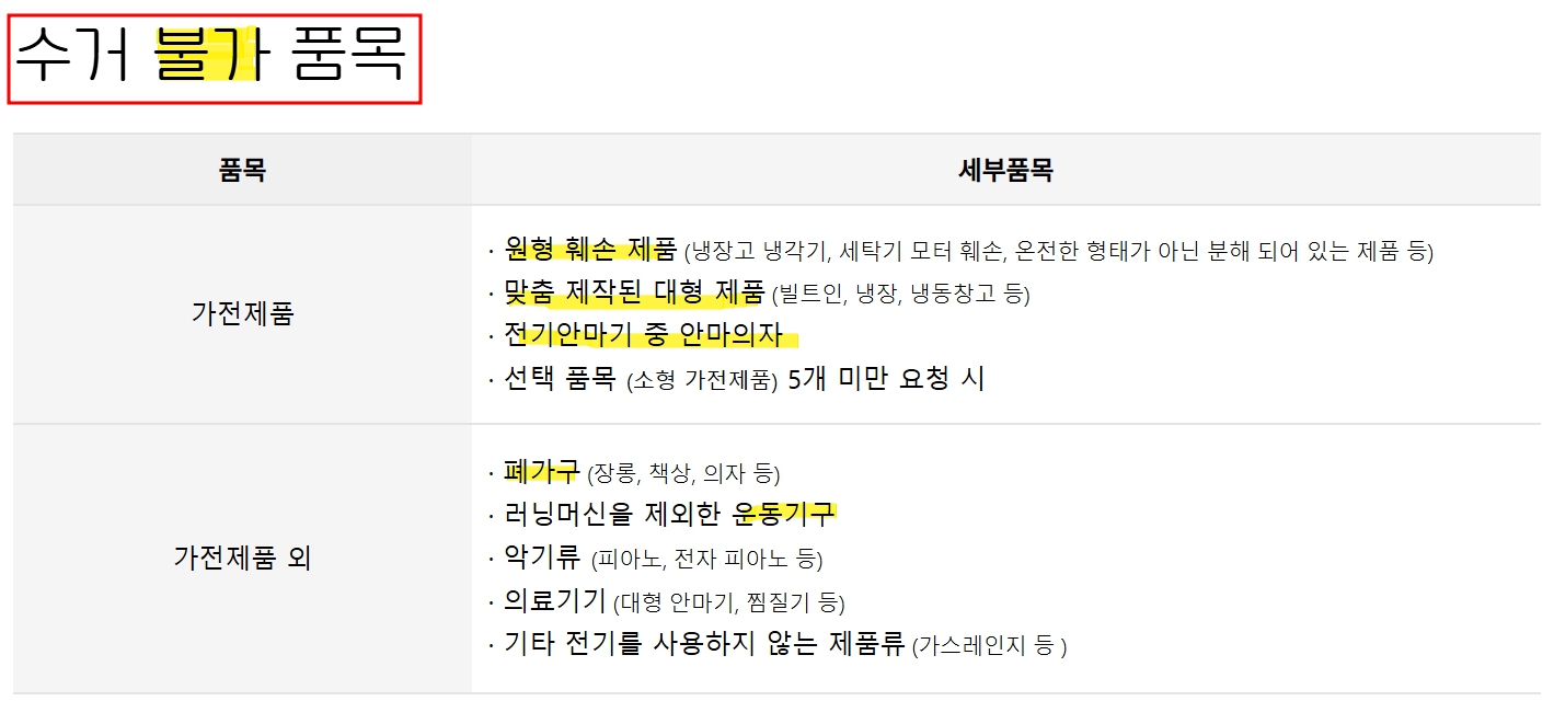 폐가전 무료수거 품목(불가능)