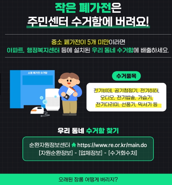 중소 폐가전이 5개 미만이라면 가까운 주민센터나 아파트 단지 내 폐가전 수거함 이용