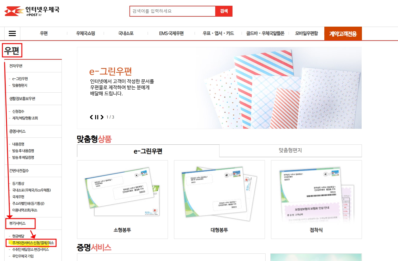 우체국 웹사이트 신청 방법
