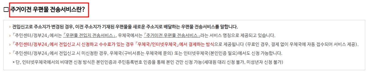 주거이전 우편물 전입지 전송서비스 신청방법
