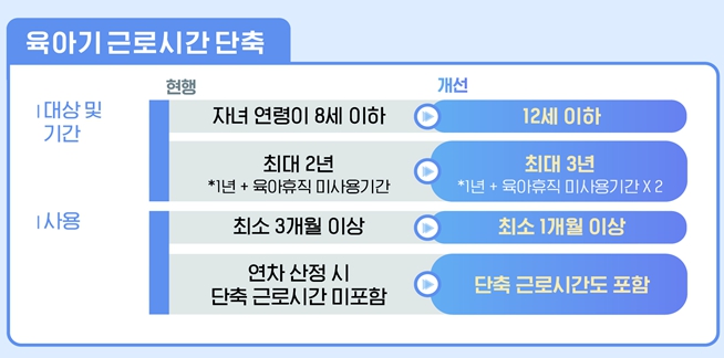 이번 개정 내용은 여성뿐만 아니라 남성 근로자들의 육아 참여를 촉진하고, 가족 단위의 행복한 삶을 지원하는 방향으로 이루어졌다.