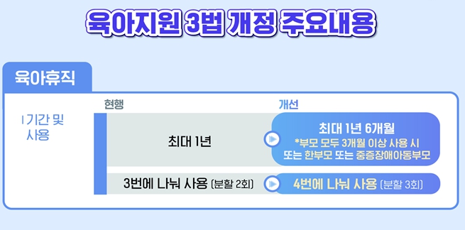 육아지원 3법 개정 육아휴직 기간 연장