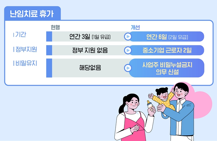 2025년부터 난임 치료를 받는 근로자들을 위한 휴가와 급여 지원 제도가 신설된다.