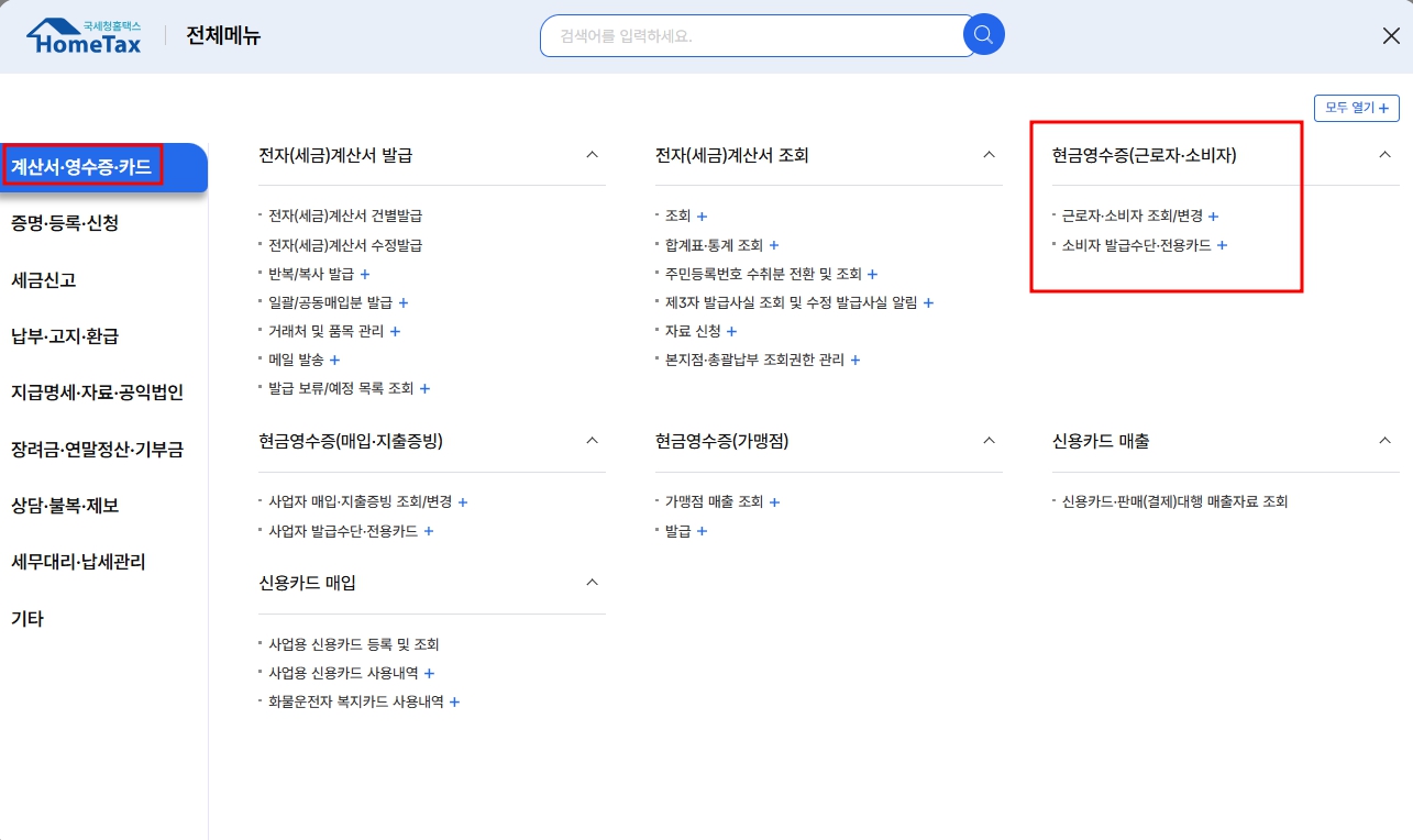 국세청의 홈택스 웹사이트를 통해 현금영수증 내역을 바로 확인할 수 있습니다.