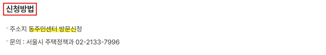 문의처: 서울시 주택정책과(02-2133-7996)에서 사업에 대한 상세한 안내를 받을 수 있습니다.