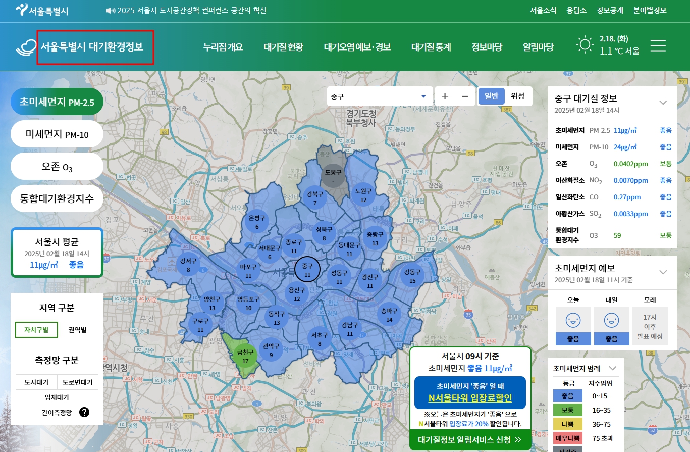 서울특별시 대기환경정보를 방문해 보세요.