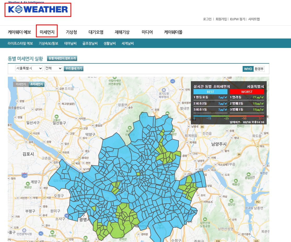 서울 지역의 미세먼지 예보를 실시간으로 확인할 수 있습니다.