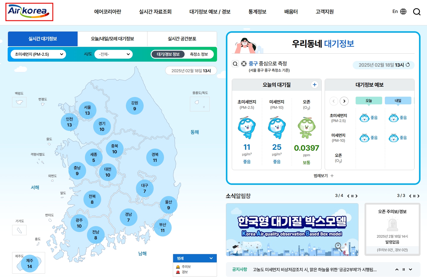 Airkorea를 통해 정보를 얻을 수 있습니다.