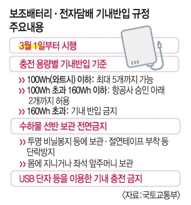 3월 1일 이후 여행계획이 있으신 분들은 강화된 보조배터리 기내반입 규정과
