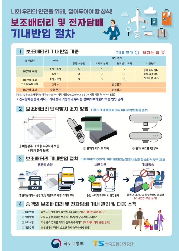 보조배터리와 전자담배의 안전한 기내 반입을 위해 승객들은 새로운 규정을 숙지하고,