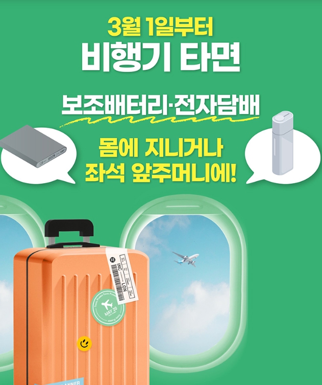 2025년 3월 1일부터 시행되는 보조배터리 기내반입 규정 강화와 전자담배 관리 규정은